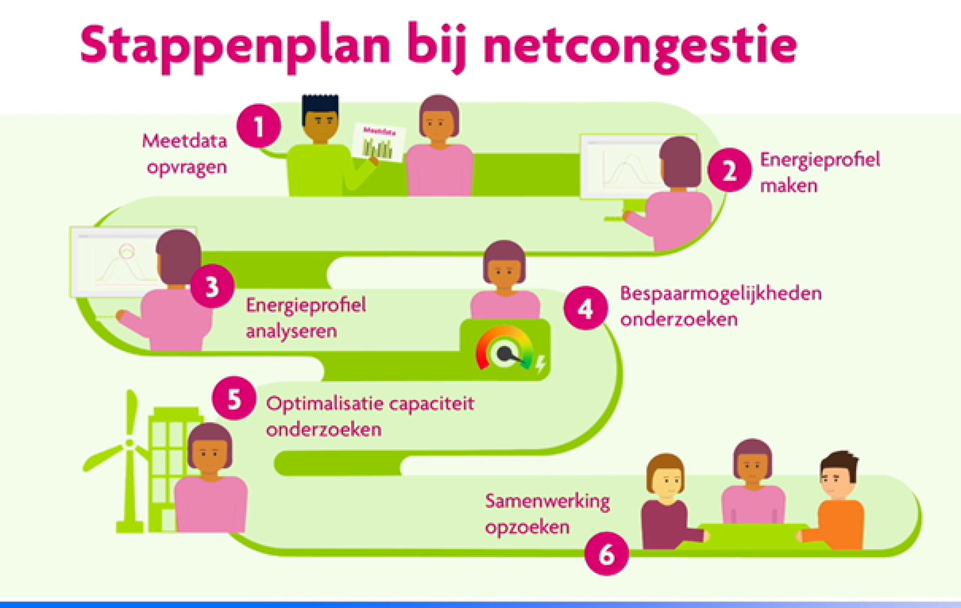 “Zodra ondernemers horen dat ze tien jaar moeten wachten op een netverzwaring vragen zij zich af wat ze in de tussentijd moeten doen. Maar je kunt nú al samen met de netbeheerder stappen zetten.” Drie pijlers helpen je daarbij vooruit.
