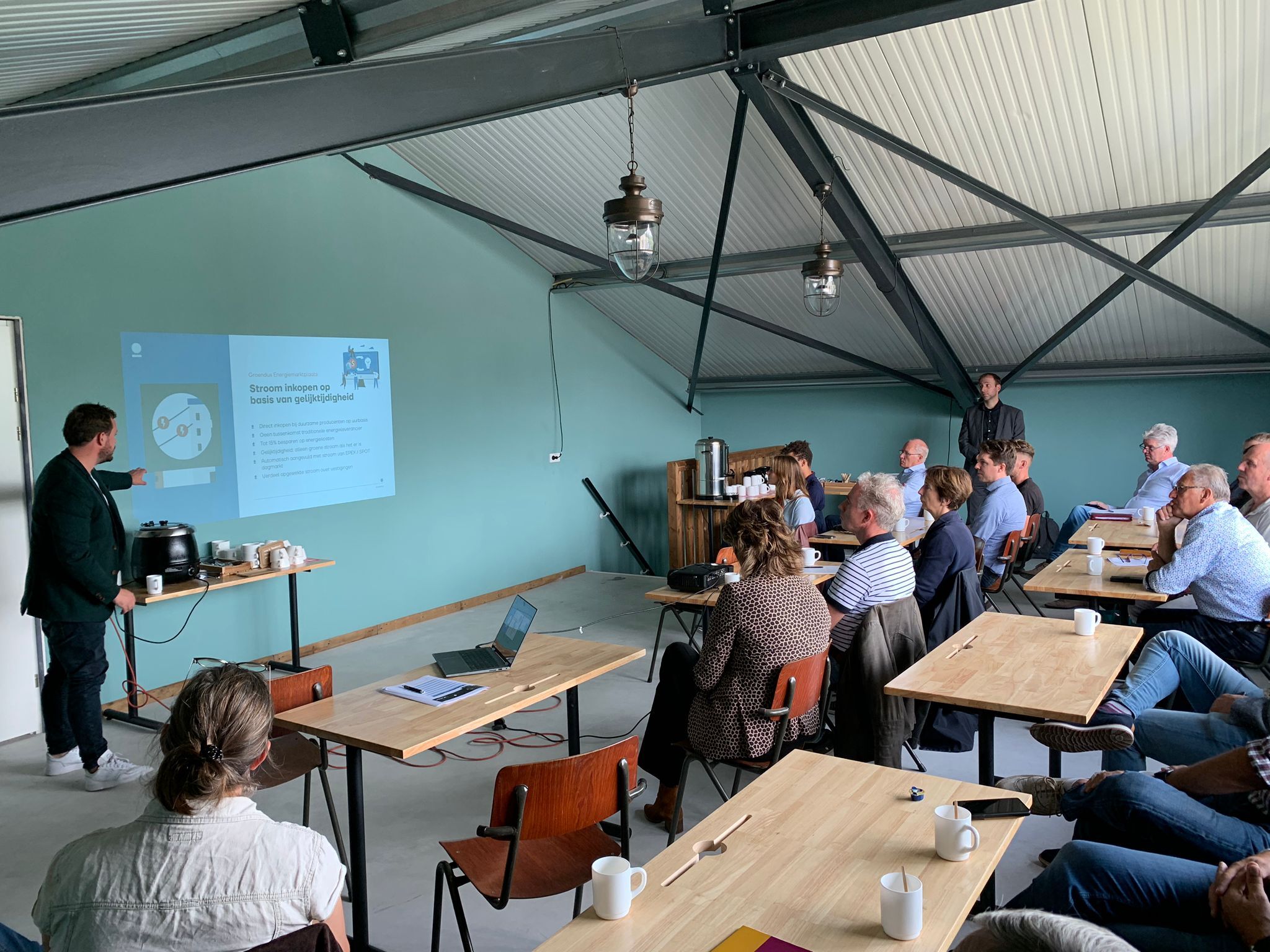 We zijn inmiddels gewend zijn online te vergaderen en webinars te volgens. Toch blijft het prettig om informatie live tot je te nemen en gelijkgestemden in het écht te ontmoeten. Daarom organiseerden we een seminar op het gemeentehuis. In totaal waren er ruim 20 geïnteresseerde ondernemers wat, samen met de overige informatievoorziening, leidde tot 24 energiescans en subsidieaanvragen.