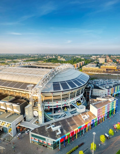 Door het plaatsen van een extra baterij in combinatie met onze EnergieMarktplaats is de Johan Cruijff ArenA in staat om 100% duurzame en zelfs lokale stroom in te zetten. We gebruiken daarbij de zonne-energie die wordt opgewekt op het eigen dak van de ArenA. Dat vullen we aan met andere duurzame bronnen zoals een dichtbij gelegen windpark en zonnepark.