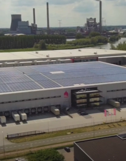 Op het dak van een groot Leen Bakker distributiecentrum in Raamsdonksveer plaatste Groendus een zonnecentrale met 6.920 zonnepanelen. Samen hebben de panelen een vermogen van 2.376 kWp.