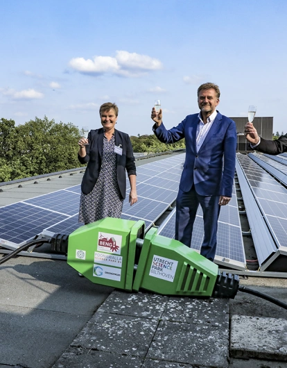 Op een mooie zonnige dag komt straks 15% van het energieverbruik van ons eigen dak.
